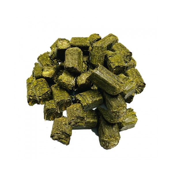 Der Würfel Equilibre Costalfa Wafer besteht zu 50 % aus Luzerne und zu 50 % aus dehydriertem, ungeschnittenem Schwingelheu mit langen Fasern, das zu Würfeln von 3 x 3 cm gepresst wird.