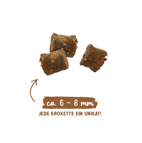 Ob als tägliches Lieblingsfutter oder als besondere Belohnung zwischendurch: Die soften Kroketten sind außen zart und innen aromatisch-saftig. Ihre weiche Textur macht jede Mahlzeit zum kleinen Fest besonders für Katzen, die Trockenfutter sonst eher kritisch begegnen.