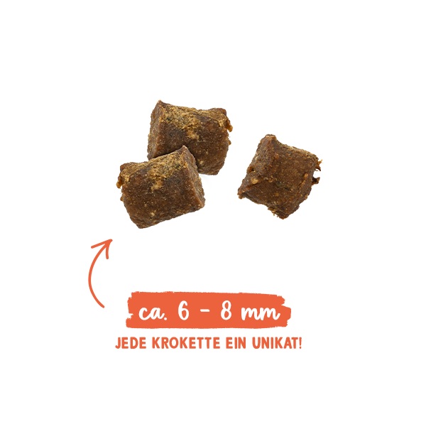 Die zarten, soften Kroketten laden zum genussvollen Kauen ein ideal für Katzen mit feinem Gaumen oder sensiblen Zähnen. Jede Portion ist eine kleine Belohnung, ein Moment echter Freude und ein Fest für die Sinne.